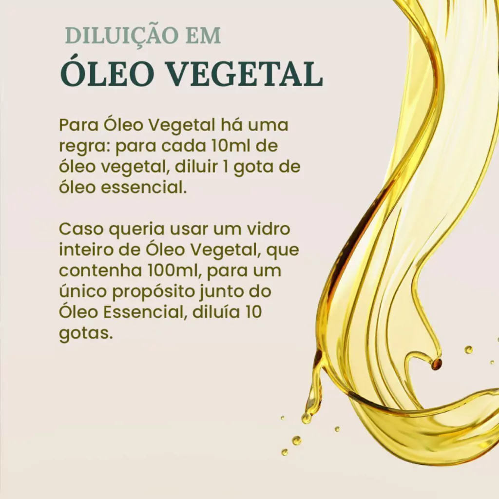Em massagem facial e corporal misture algumas gotas de óleos essenciais e crie seu óleo aromático pessoal. Para hidratar a pele aplicar no corpo ainda molhado após o banho. Não é necessário enxaguar.